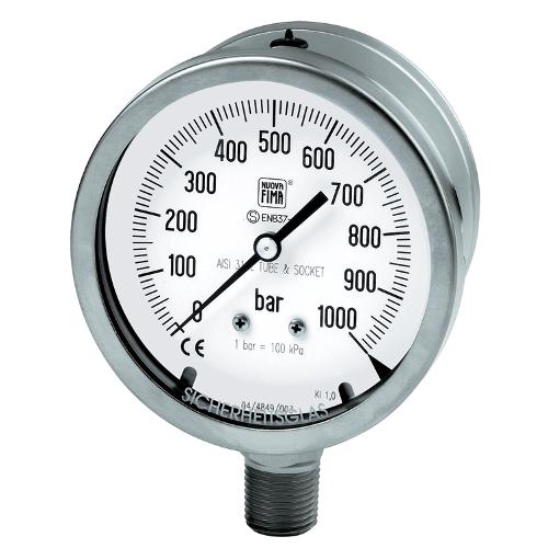 Safety stainless steel pressure gauges meet increased security requirements. They are made in accordance with EN 837-1 / S3 and ASME B40.1.