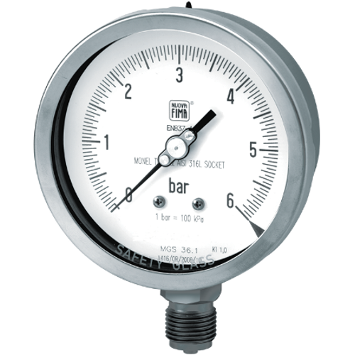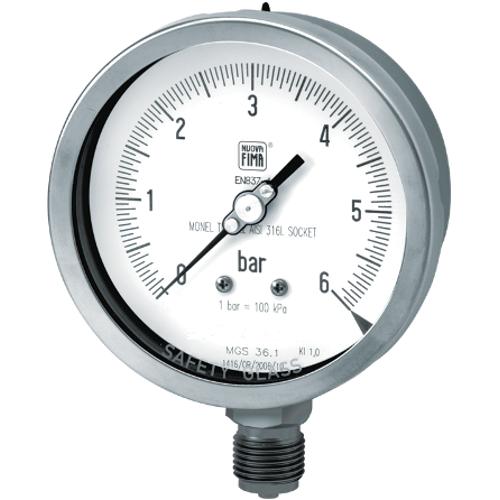 Safety stainless steel pressure gauges, S3 and ASME B40.1 conformed